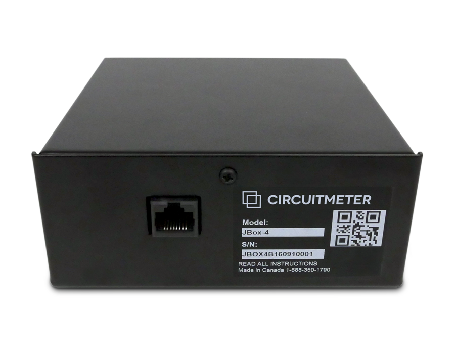 This enables a flexible installation process utilizing standard CAT5 cables. The JBox-4 is a 4 port configuration allowing a single JBox-4 to connect up to 4 CTs to a WebMeter36F™.
